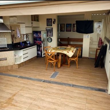 Casa com 3 dormitórios, 1 Wc social, sala cozinha quintal oberto com teto retrátil, churrasqueira, área de serviço, 1 Wc 2 vagas de garagem descoberta